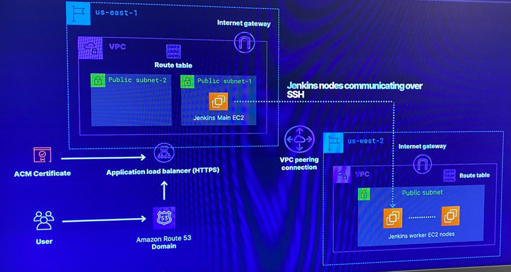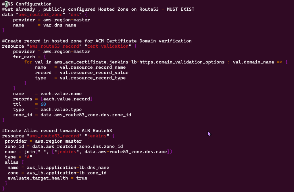 • Create path for user to connect to Jenkins application from Route 53, ALB, & ACM