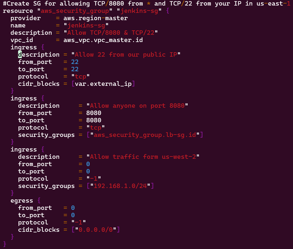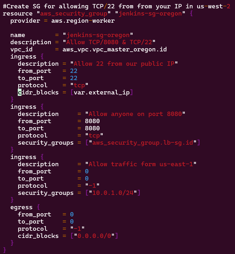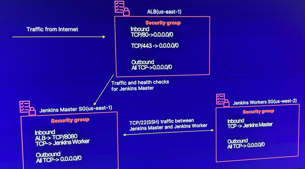 • Deploy Security Groups w/ALB communicating w/Jenkins Master & Worker