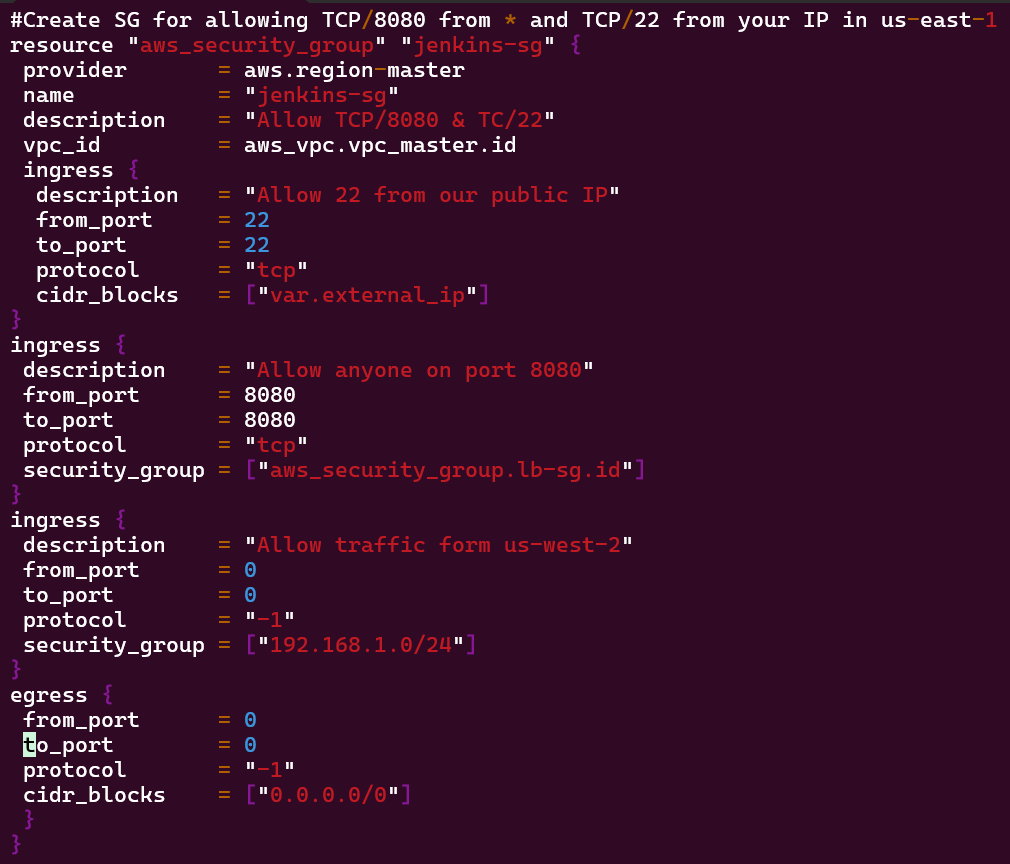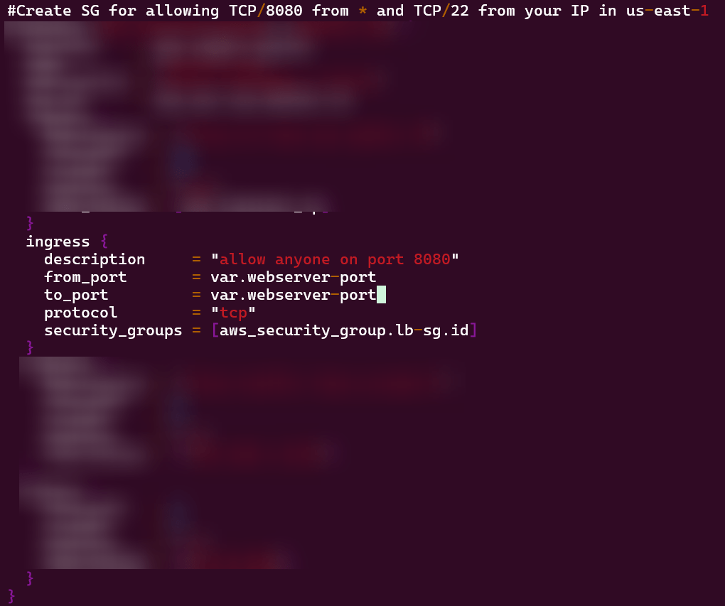 • Update ALB.tf w/a new playbook for ingress rules into the security group & port information