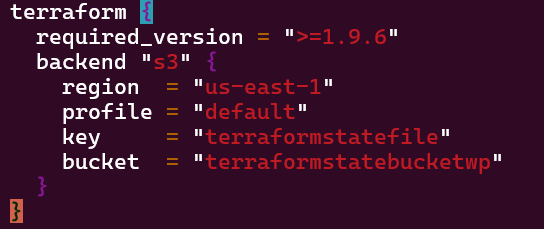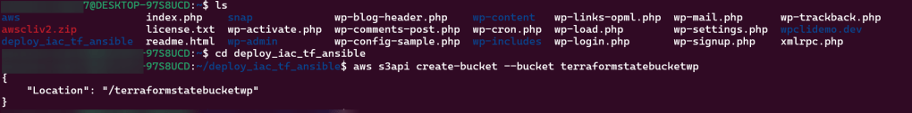 • aws s3api create-bucket –bucket terraformstatebucketwp