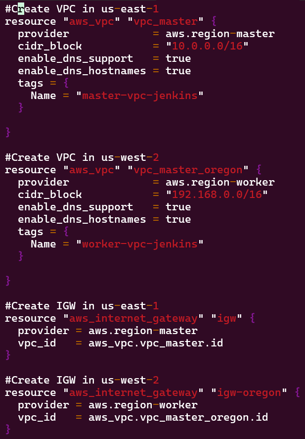 • Created 2 files that will be the key/foundation to the rest of infrastructure built & reference. This is the source code used to manage Terraform resources: