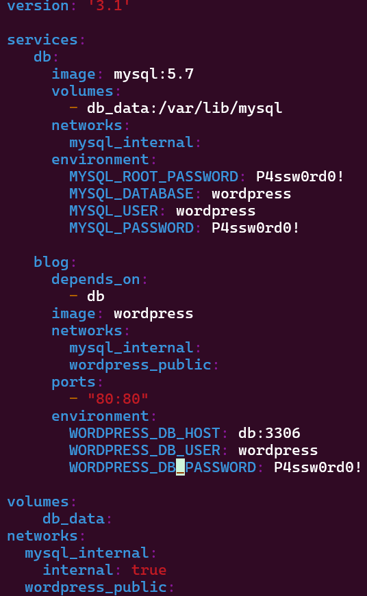 - Compose the file w/the pertinent SQL, volume, network, & WordPress information