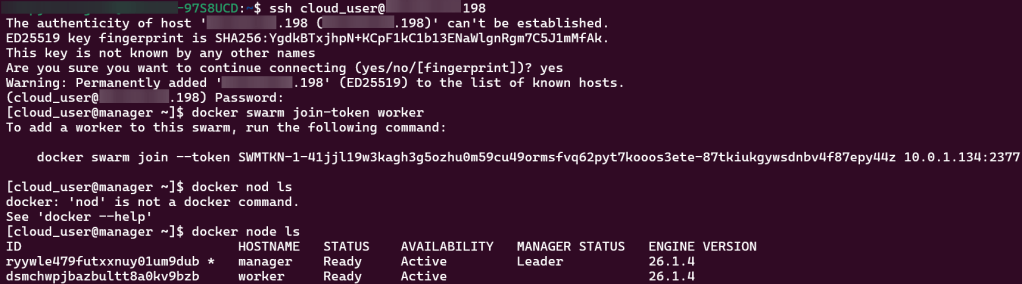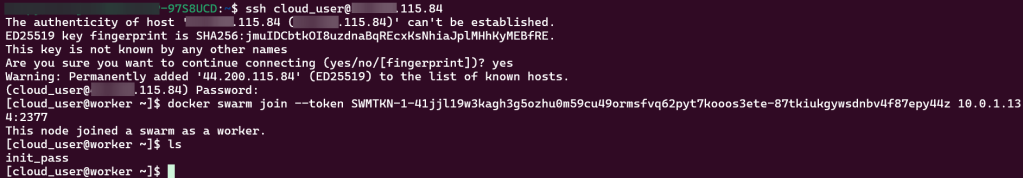 - Once the docker swarm join –token command is created, copy-pasta into your worker node