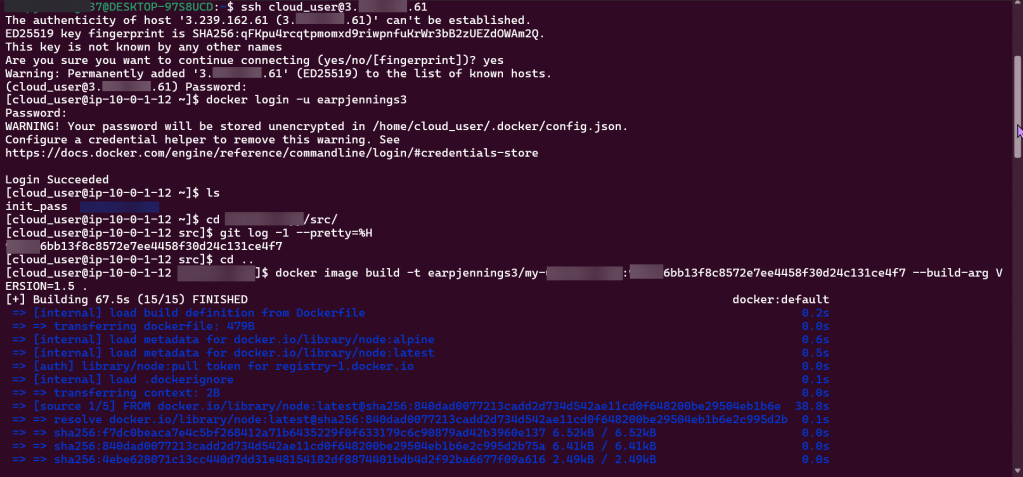 SSH, Login to DockerHub, & Git Commit Hash:
