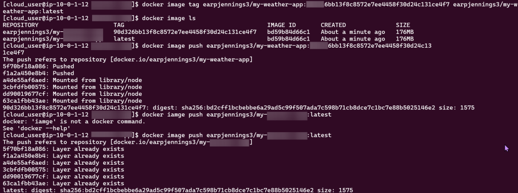 - docker image push (see below for details)