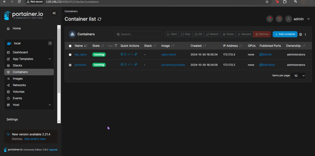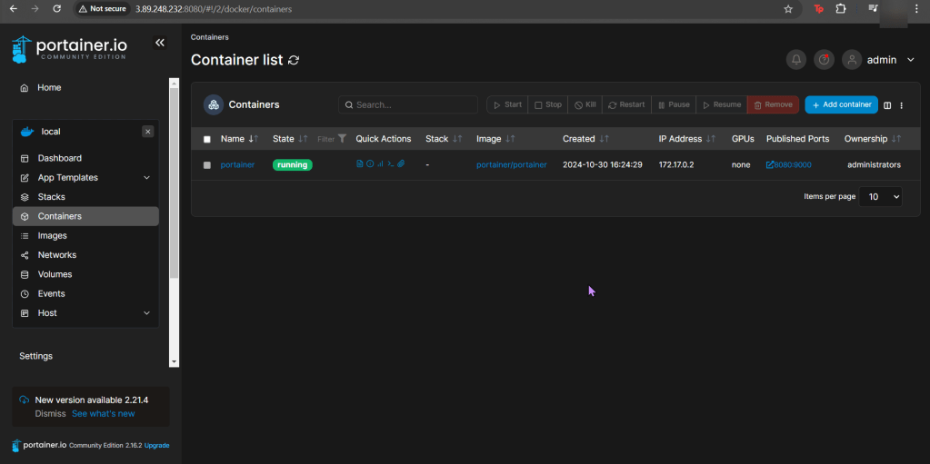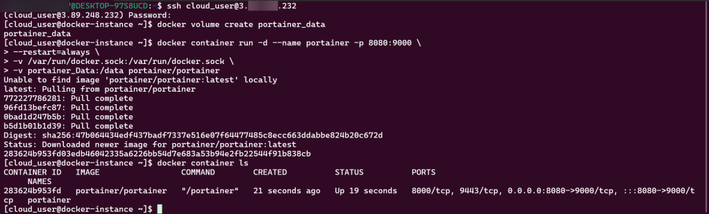 Login to Portainer & Create Container: