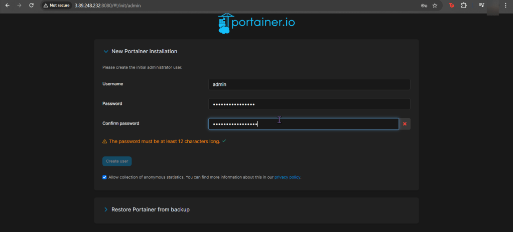 - Login to Portainer