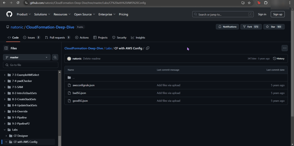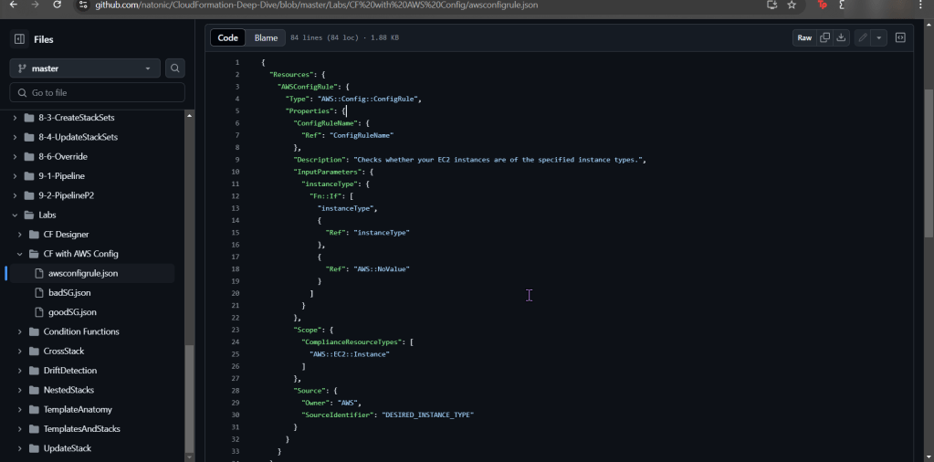 - Snag the 1st json file in the CloudFormation github link