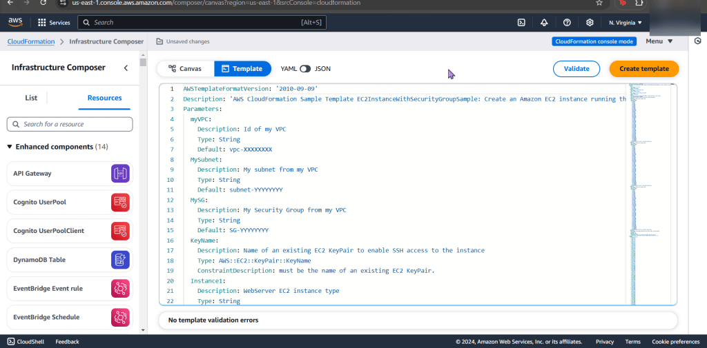 - Go ahead & post the 3rd json file in the “infrastructure composer” under CloudFormation