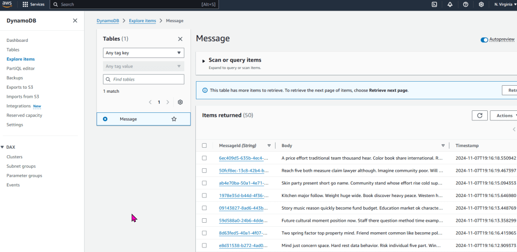 W/magic I will make this message appear!…. or just use a Lambda function that is triggered using SQS & input data into a DB.