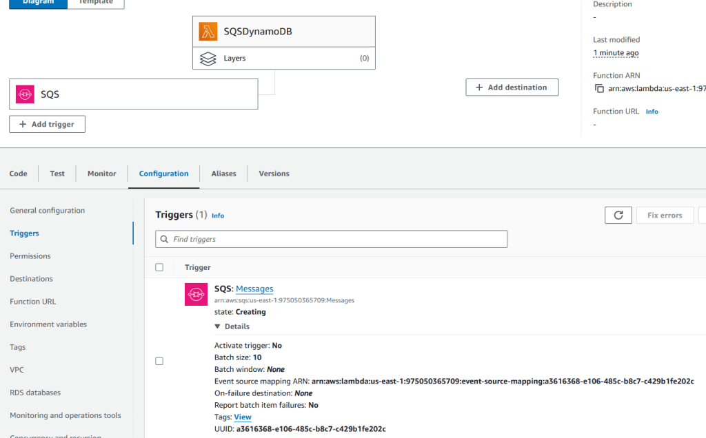 • Important note – create a SQS message, so when creating the trigger – you can snag that message created in SQS