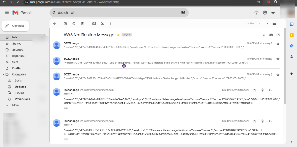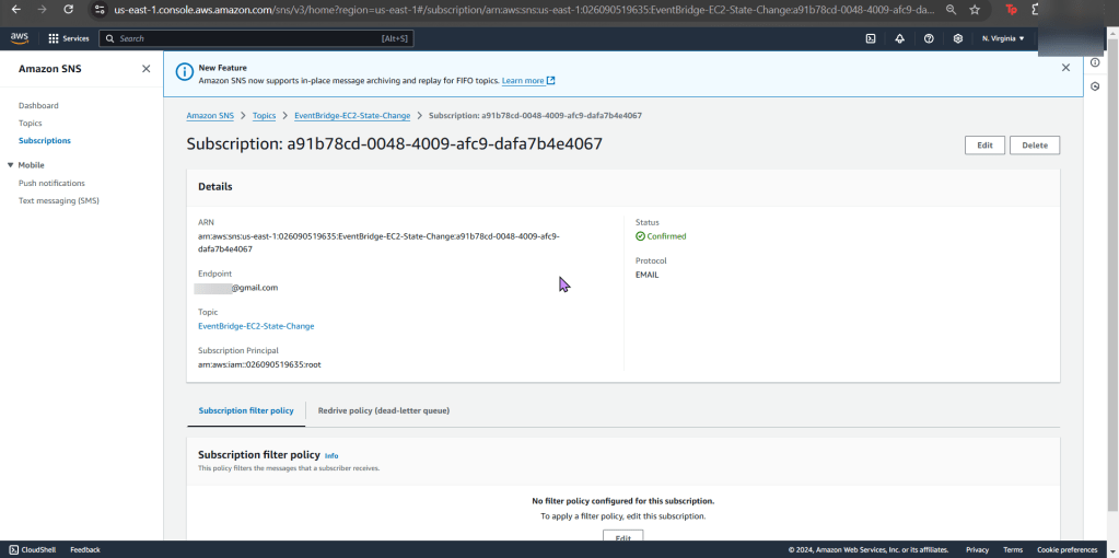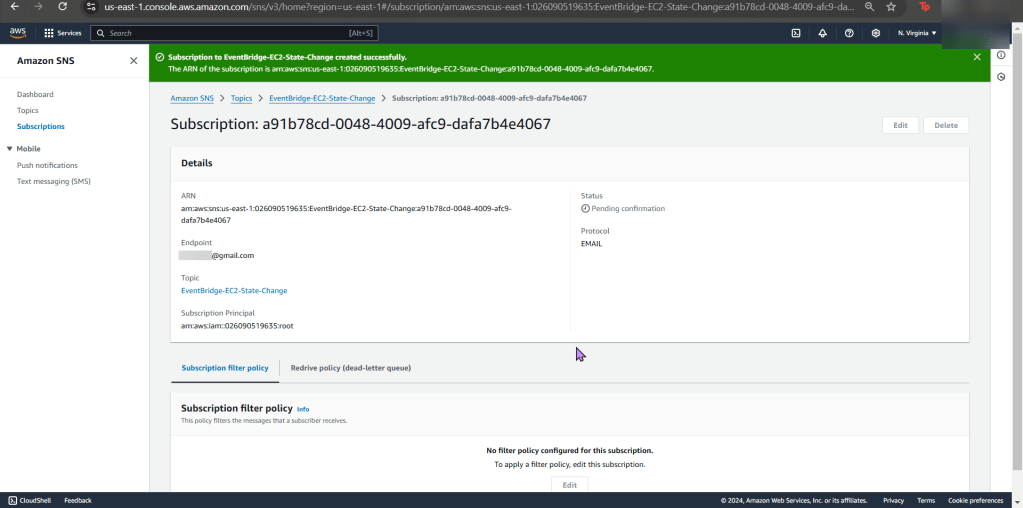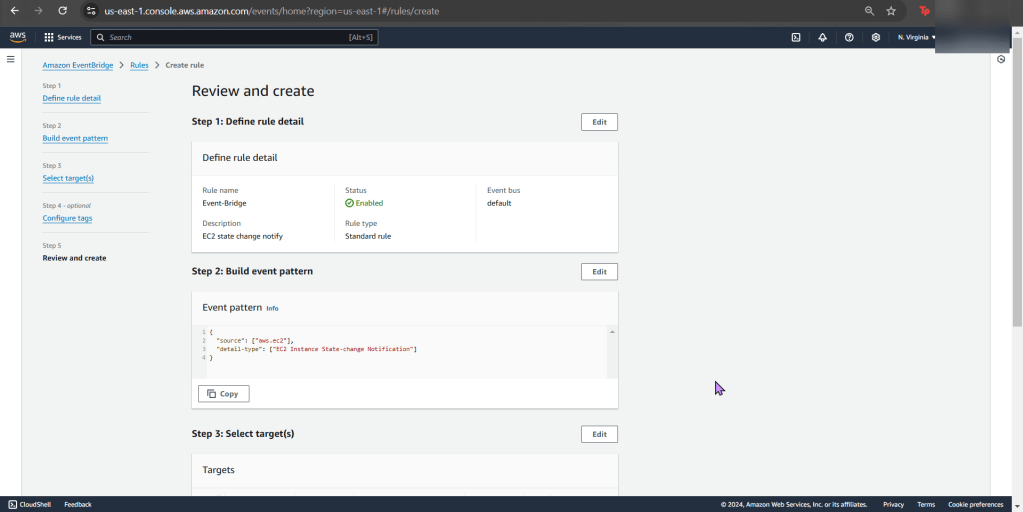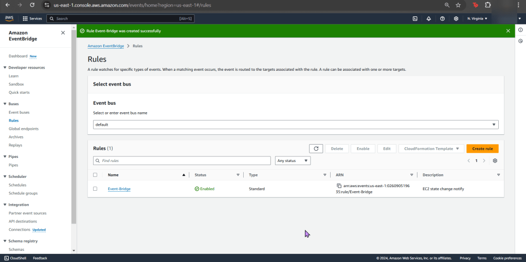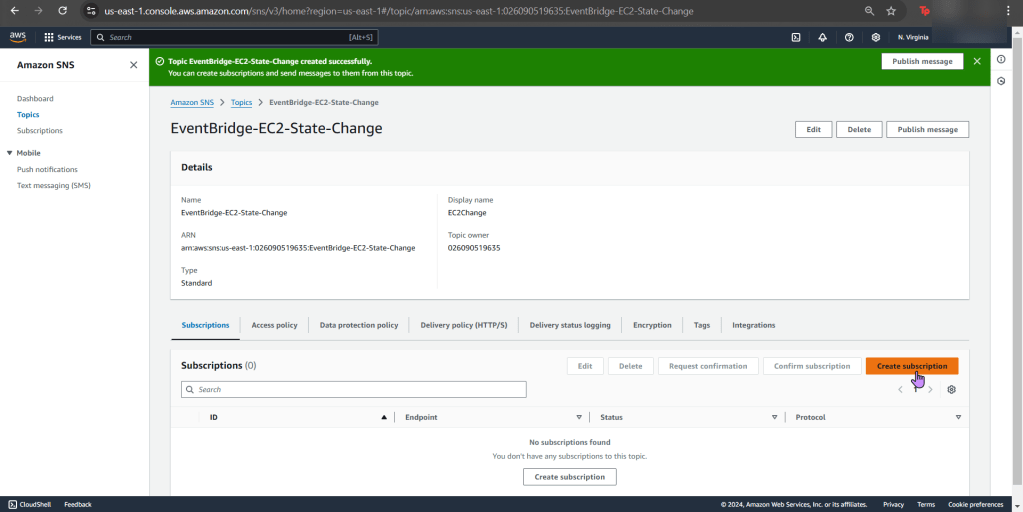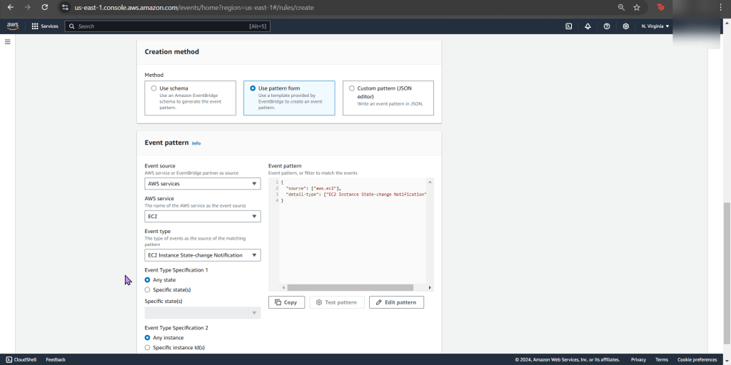 - Create Amazon EventBridge rule to trigger SNS when EC2 state changes