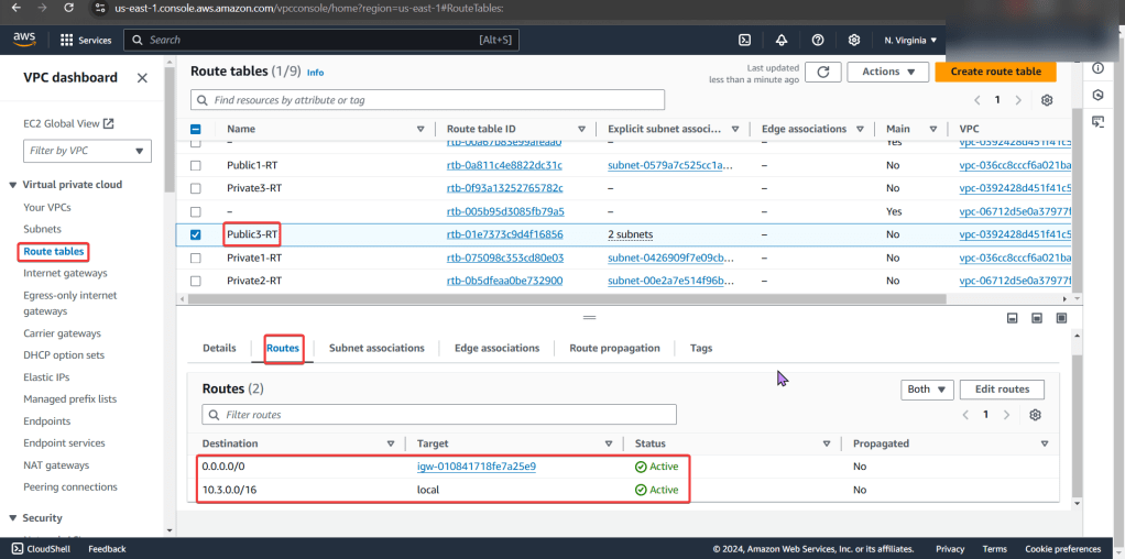 • Remember in other environments, there maybe others using this route table only permitting private access, so not modify.