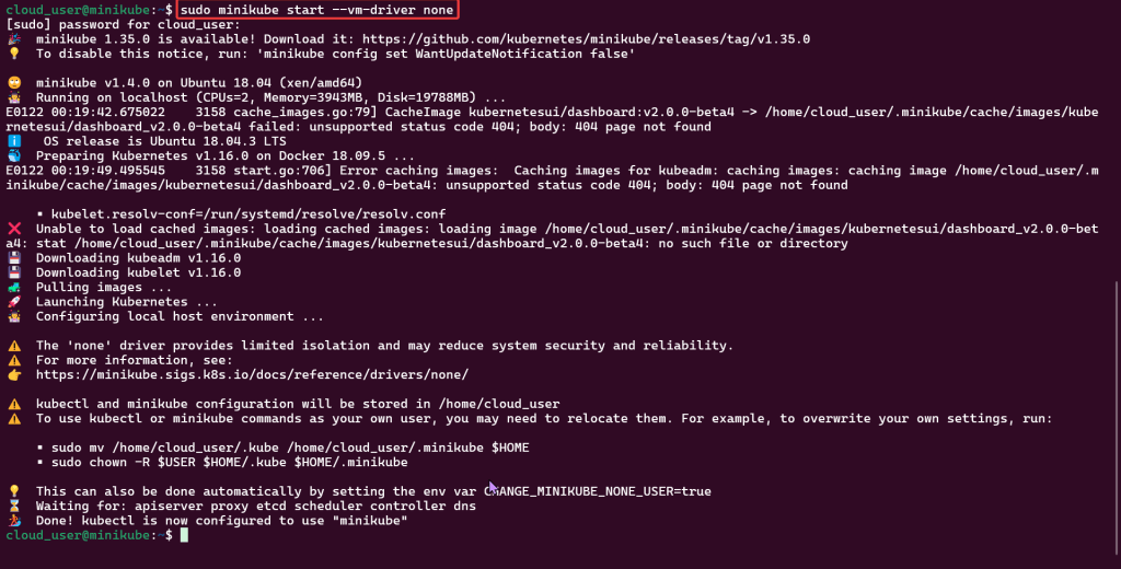 Start Minikube Cluster: