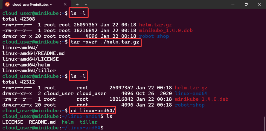 - tar -xvzf ~/helm.tar.gz