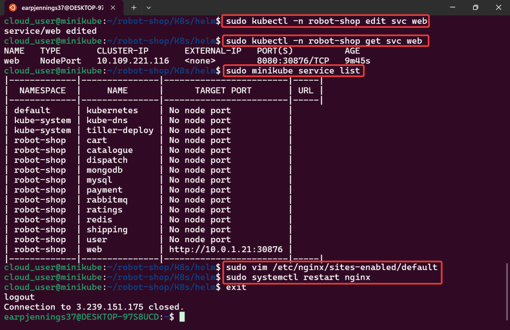 - Edit to use Nodeport & Configure Nginx to Proxy