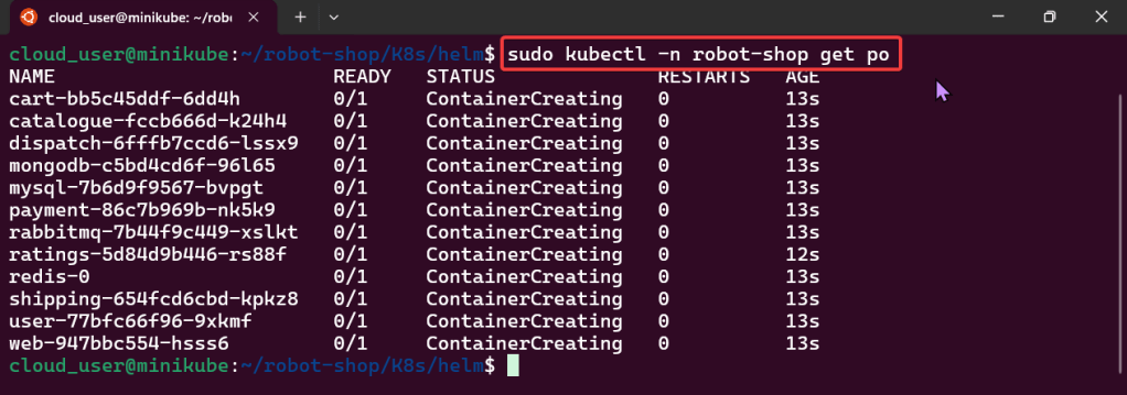 - sudo helm install