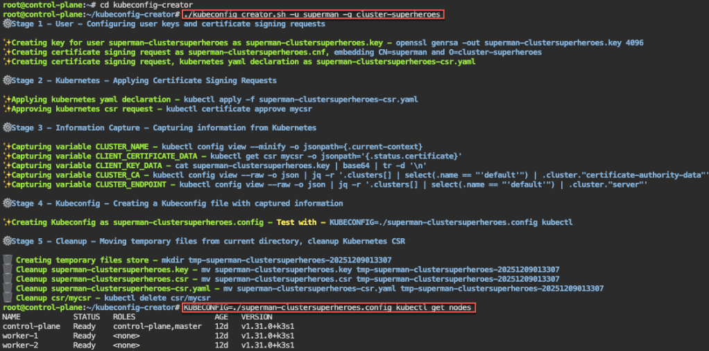 # git clone https://github.com/spurin/kubeconfig-creator.git