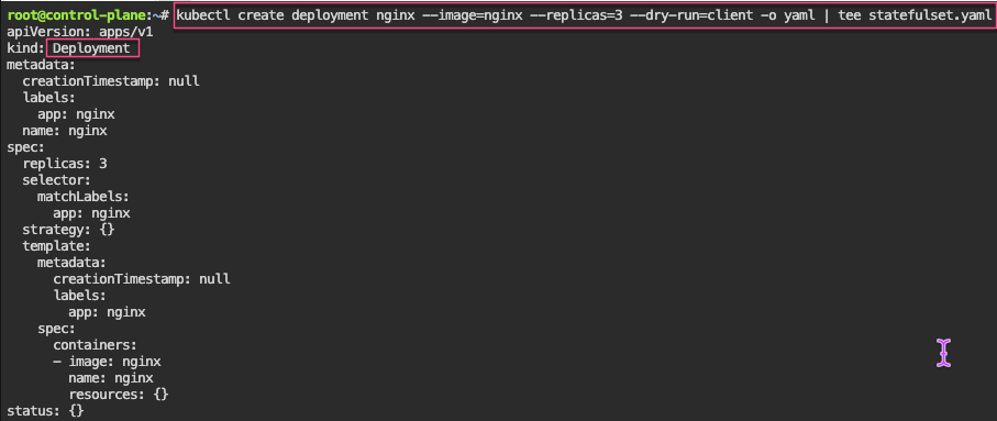 # kubectl run ubuntu --image=spurin/rootshell:latest -o yaml --dry-run=client -- sleep infinity | tee ubuntu_secure.yaml