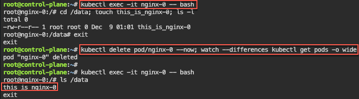 # kubectl exec -it nginx-0 -- bash
