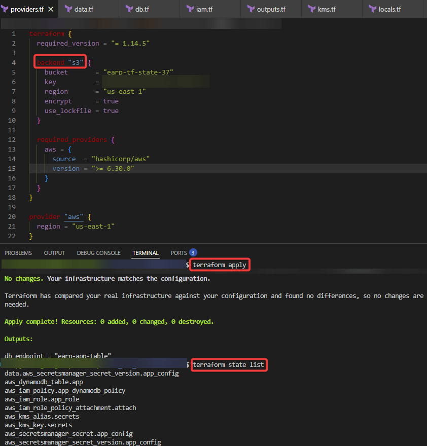- Locals created map for DynamoDB name & app for JSON decoding from secret version