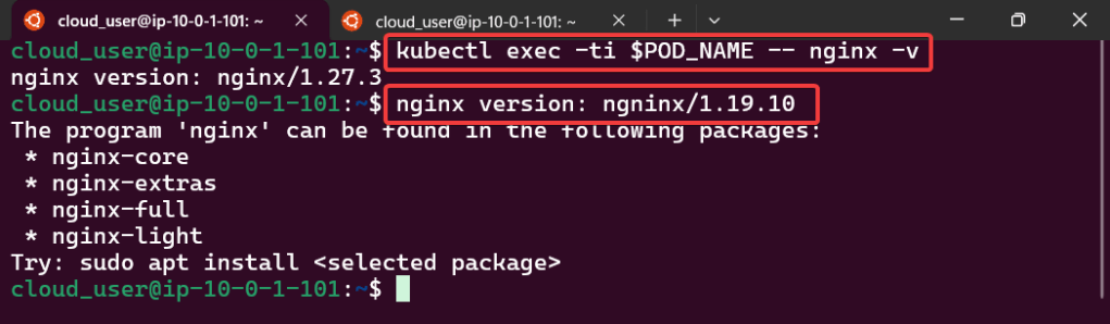 kubectl rollout undo deployment/nginx --to-revision=1 && kubectl rollout status deployment/nginx