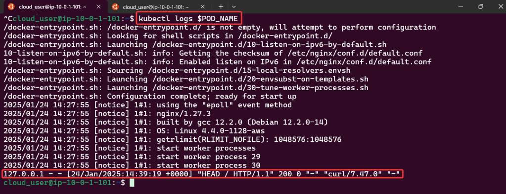 NGINX_IP=$(kubectl get pods -o wide | awk '/nginx/ { print $6 }'); echo $NGINX_IP