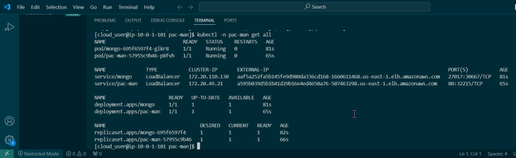 # kubectl get deployment; echo; kubectl get pods; echo; kubectl get svc